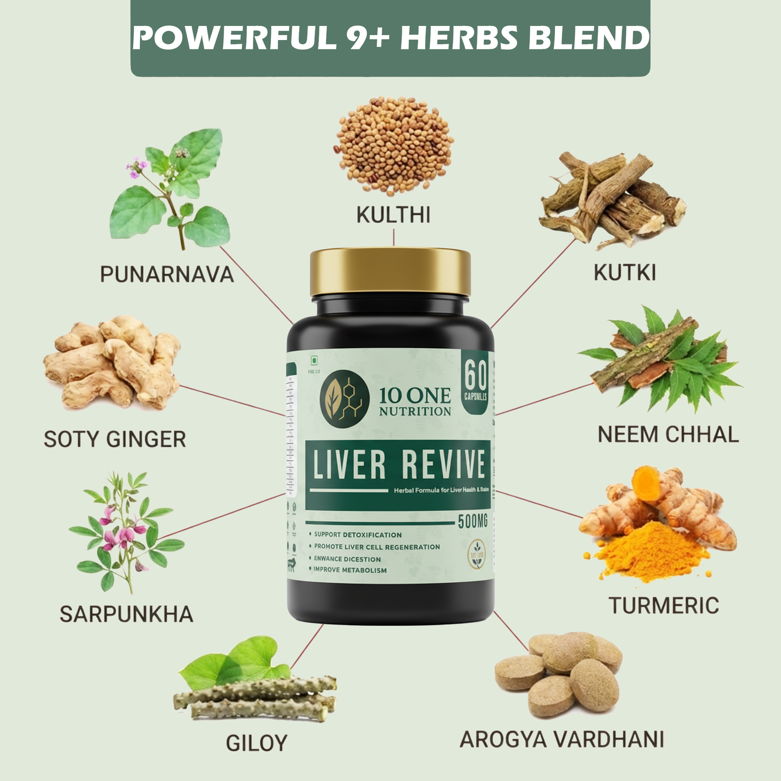 10 One Nutrition’s Liver Revive is a powerful Ayurvedic solution made with a blend of 20 hand -picked natural herbs that are carefully formulated under experts’ guidance to make the best of Ayurveda, which help supports detoxification, digestion and metabolism.